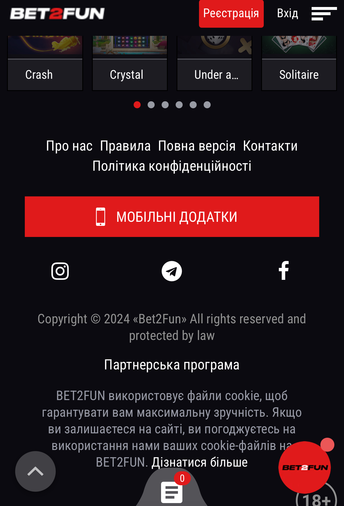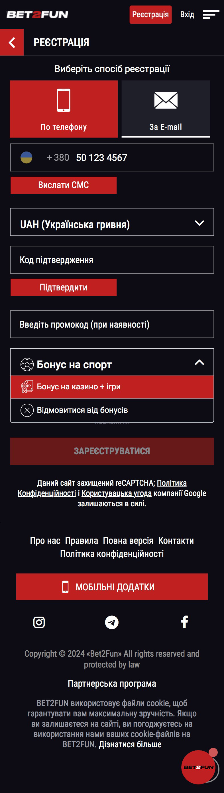 В Україні, в букмекерській компанії BET2FUN, розробники створили інтуїтивно зрозумілий та функціональний мобільний додаток. Наразі, ви можете його завантажити на пристрій Android, для iOS знаходиться на стадії активної розробки. Гравцям, які віддають перевагу мобільним ставкам, мають можливість завантажити безпосередньо на свій мобільний телефон через офіційний сайт BET2FUN. Основні переваги використання мобільного додатку полягають у тому, що він завжди з вами, не потребує додаткового входу або верифікації , а також забезпечує безперебійний доступ до прямих трансляцій.